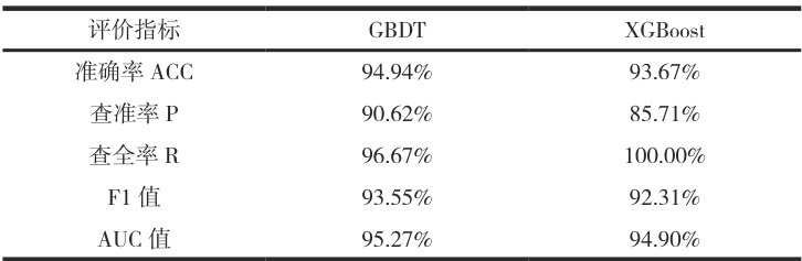 在使用默认参数的情况下,GBDT 和XGBoost 模型对清河流域做积水点预测,选取准确率、查准率、查全率、F1 值和 AUC 值作为评判模型预测效果的指标,如表 2 所示,GBDT 算法除了在查全率上稍逊色于 XGBoost 算法,另外四项指标均为最优,所以选择 GBDT 模型作为最终预测模型。