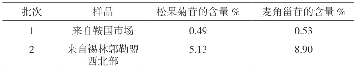 由于产地不同,样品中松果菊苷和麦角甾苷的含量差异很大。