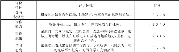 例如,教师在设计、开展人教八下 Unit9 Have you ever been to a museum?这一课的写作项目时,注重评价方法与项目内容相匹配,针对协作项目设置相应评价标准(如下表):