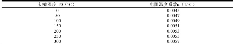 表1 参考温度与电阻温度系数的对应关系