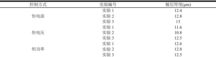 针对以上三种加热控制方式,进行了多次实验,对坩埚寿命和铍层稳定性进行了记录,表 2 展示了不同控制方式下铍层厚度测量情况,由于不便展示过多数据,在该表中,每个数据均为进行多次实验取平均值所得。