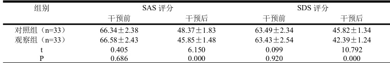 干预后,观察组低于对照组, P<0.05 ,见表 1。