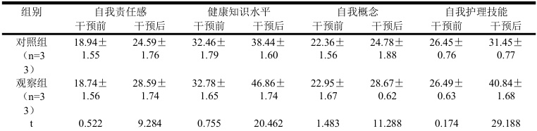表2 自我护理能力对比(分)