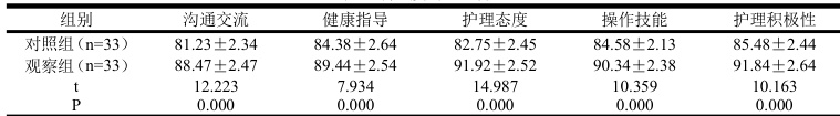 观察组:①初产妇在产后短时间内很难适应自身的新角色,因此容易出现相关负面情绪,针对这一问题,护理人员应该积极与其进行沟通,针对初产妇所存在的相关问题也应该开展耐心且详细的解答,在此期间也需要掌握其心理状态,能够为其提供心理咨询、相关知识教育等,与初产妇建立良好的关系,告诉其遇到困难时应该积极求助,也可以通过听音乐的方式减轻心理压力,改善心理状态。