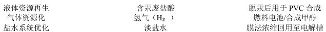 通过构建“资源-产品-再生资源”闭路循环体系,实现氯碱产业废弃物资源化利用。该体系包含四大循环路径。在固体废物方面,电石渣作为优质钙质原料替代石灰石生产水泥,实现“电石→乙炔→PVC→电石渣→水泥→建材”的完整产业链闭环;在液体资源方面,含汞废盐酸经先进脱汞工艺处理后回用于 PVC 生产;在气体资源方面,副产氢气通过PSA 提纯技术用于燃料电池或合成甲醇等高附加值产品;在盐水循环方面,创新膜法浓缩工艺将淡盐水回用于电解工序。同时构建“废盐酸+氧气→氯气→环氧丙烷→聚氨酯”的高值化利用路径,形成氯碱与化工的深度耦合[3]。这种循环经济模式通过物质流、能量流和价值流的系统集成,可有效提升资源综合利用率,推动氯碱行业向绿色低碳方向转型。典型循环路径的具体方式详见表1 所示。