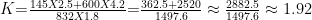 L2:锚固力臂(m)=4.2;P:节段荷载(kN) =832 ;