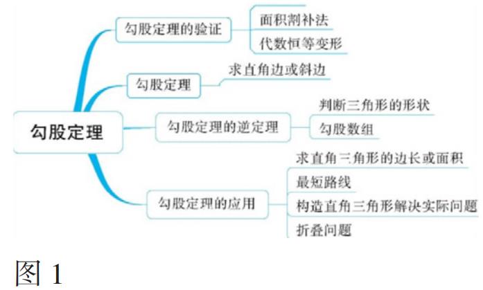 数形结合思想的核心在于通过直观与抽象的相互转化,帮助学生理解数学本质。然而,传统教学中数形结合的形式往往局限于教材插图或板书绘图,难以满足学生多样化的认知需求。对此,教师需丰富数形结合的表现形式。比如利用多媒体技术,将静态图形动态化、微观过程可视化,尤其适合呈现函数变化、几何运动等抽象内容,通过直观的视觉刺激,帮助学生观察规律,避免机械记忆结论。再如结合生活情境,从实际问题中构建数形关联。比如《生活中的轴对称》教学中,教师让学生们结合自身的生活经验,找一找生活中的轴对称现象,如剪纸、脸谱、蜻蜓等等,这些生活中生动的“形态”不仅能激发学生兴趣,还能帮助学生观察、理解轴对称这一概念的内涵。另外,还有思维导图的应用,这也是数形结合思想的一种重要形式,主要通过图形化呈现知识点间的逻辑关系,帮助学生梳理知识脉络,巩固记忆。比如《勾股定理》教学中,教师可引导学生构建括号图(如图1),总结对这一知识点的探索思路以及主要应用,也可以使用树杈图、鱼骨图等形式。思维导图能够将零散知识点整合为网络结构,强化学生的知识记忆与理解,使其在解题时能快速、灵活的迁移知识。可见,丰富数形结合的表现形式,灵活选择工具与策略,能够让数形结合从“被动呈现”转向“主动建构”,从而实现“以形启思、以数验形”的教学目标。