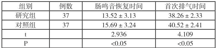 2.2 两组胃肠道功能恢复时间比较
