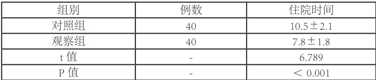 表3 两组患者住院时间比较( ⟨X±S ,d)