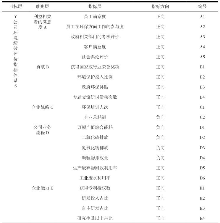 根据 2013 年颁布的《环境管理环境绩效评价指南》中建立的指标库,参照已有研究成果,根据 Y 烟叶特点以及环境绩效棱柱模型的五大维度选取指标,分别是:利益相关者的满意、贡献、企业战略、业务流程和企业能力;[2]