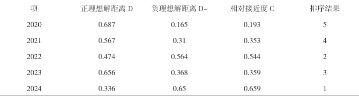 表 3.3 TOPSIS 评价计算结果