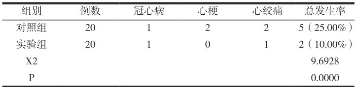 两组患者治疗后,实验组患者的心血管风险事件发生率显著低于对照组,差异显著( P<0.05 )。