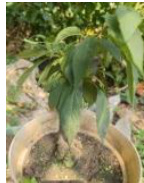 原来的旧土由于已被病菌感染,必须全部弃用,重新更换新的种植土。新的种植土可事先采用园土、泥炭土、砂按 3:3:4 比例拌合均匀后摊晒备用。砂的透气性好,实践证明用砂来养根很合适,因此砂的用量还可以视根的情况在后期酌情局部增加。准备上盆的种植土应干燥松散,以手握能成团,松开轻触则松散为宜,不能过于潮湿。过于潮湿的土壤不透气,会造成保留的根系继续腐烂。不论是上盆时还是后期管养过程中,都要关注土壤墒情,保持湿润即可,不可过干造成干枯也不能积水造成烂根。