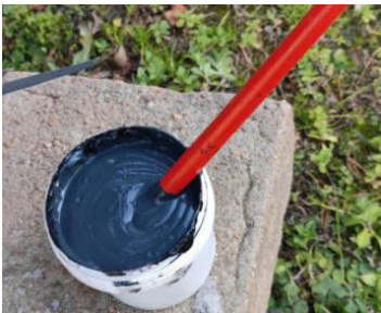 为了防止伤口干裂,减少伤口感染的风险,防止水分和营养流失,促进伤口愈合,提高成活率,在以上步骤处理完成后,立即为所有枝条、树根上的伤口用软毛刷涂刷伤口愈合膏。伤口愈合膏事先加入黑色墨汁搅拌均匀。没有用完的伤口愈合膏盖好瓶盖置于阴凉处,留着以后还可接着再用。涂过的软毛刷子用干净的水泡起来以保持刷毛柔软,以后还能继续使用。