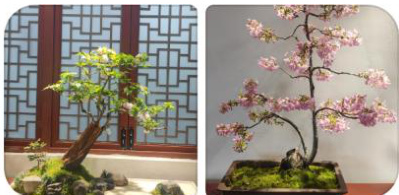 重新上盆的樱花盆景在管养过程中应控水、合理施肥、控旺、定期检查,预防复发。3、重新焕发生机的樱花盆景展出效果