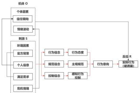 结合影响因素基于刺激-机体-反应理论从心理活动、行为反应的角度对诱骗机理进行分析,同时,基于计划行为理论,从意愿产生至行为执行的视角对诱骗机理展开分析,构建大学生群体采纳欺诈信息的诱骗机理理论模型,见图3-1。
