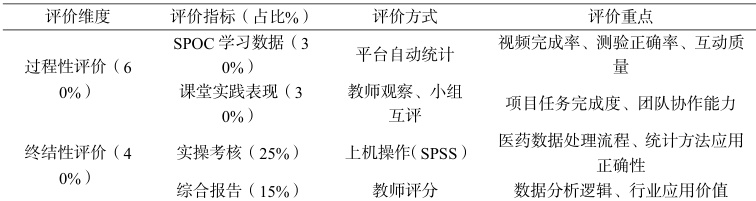 表1 高职医药数理统计课程评价体系