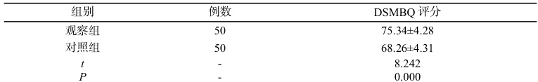 观察组DSMBQ 评分比对照组优( P<0.05 )。如表 2。