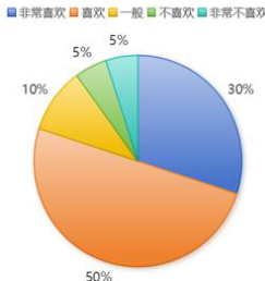 从上图得知,学生对古诗词比较感兴趣的。有 30%的学生表示非常喜欢古诗词,只有极少数不喜欢或者非常不喜欢,说明学生对学习古诗词的态度还是很积极的。
