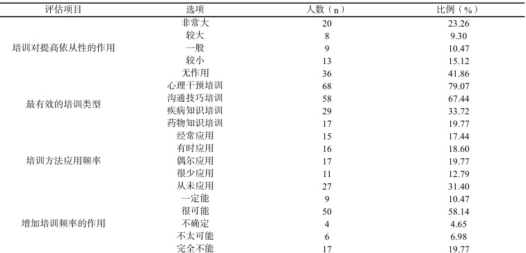 2.5 培训与患者依从性关系的评估护人员对培训与患者治疗依从性关系的评价结果如表 5 所示