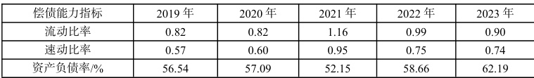 表 2 2019 年-2023 年伊利股份偿债能力指标
