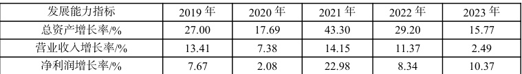 表 4 2019 年-2023 年伊利股份发展能力指标