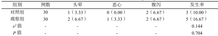 1.4.2 对比两组患儿的不良反应发生率统计两组患儿出现的不良反应(头晕、恶心、腹泻),并计算其发生率。