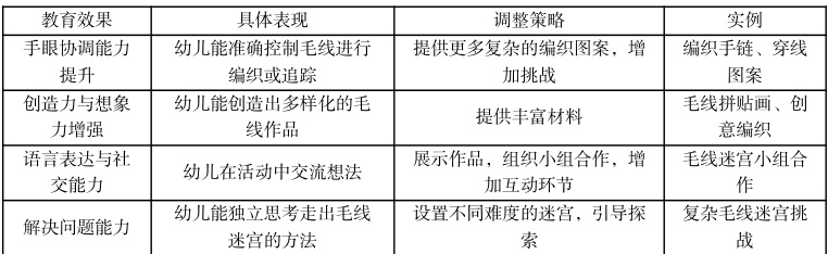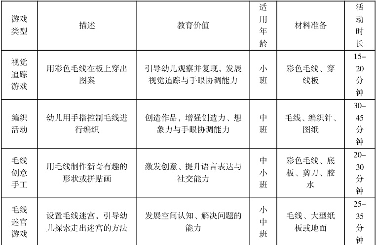 三、以下是在编织游戏中毛线材料的投放在幼儿区角中应用的详细分析:编织游戏在幼儿区角中的教育价值