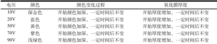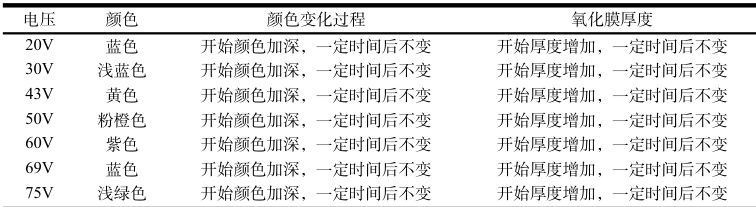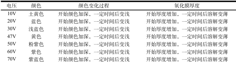 表1 以稀硫酸为电解液,电压和氧化膜之间关系