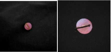 以TA1 钛金属板材为原材料,手工打磨出吊坠基底,然后经阳极氧化着色,制作出吊坠。吊坠由两片钛组合而成,可组合佩戴,也可拆分佩戴。吊坠呈紫色,弥补了传统金属颜色单一的问题。极简的几何形状辅以绚丽的彩色,以更少表达最多。