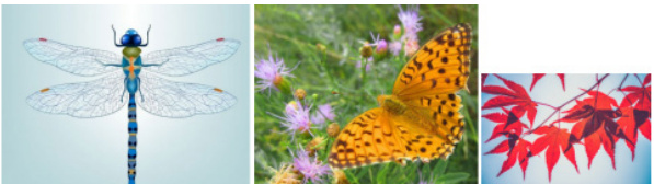 大自然中,对称现在普遍存在,对称给人以平衡、典雅、安定的感觉。如蜻蜓、蝴蝶的身体结构;枫叶的形状等。