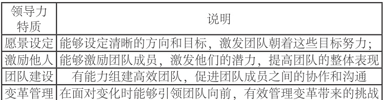 不同组织对于管理者领导力特质有不同的定义,针对 C 公司的情况,建议按照下表所示内容定义领导力特质。