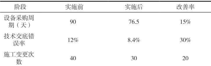 1. 通过标准化体系实施,设备采购周期缩短15%,技术交底错误率降低 30%,施工变更次数减少 25%(表 2)。