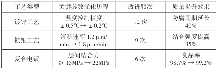 特种工艺创新集群:锌/ 锡/ 铜复合电镀工艺专利申请达7 项(其中发明专利3 项);