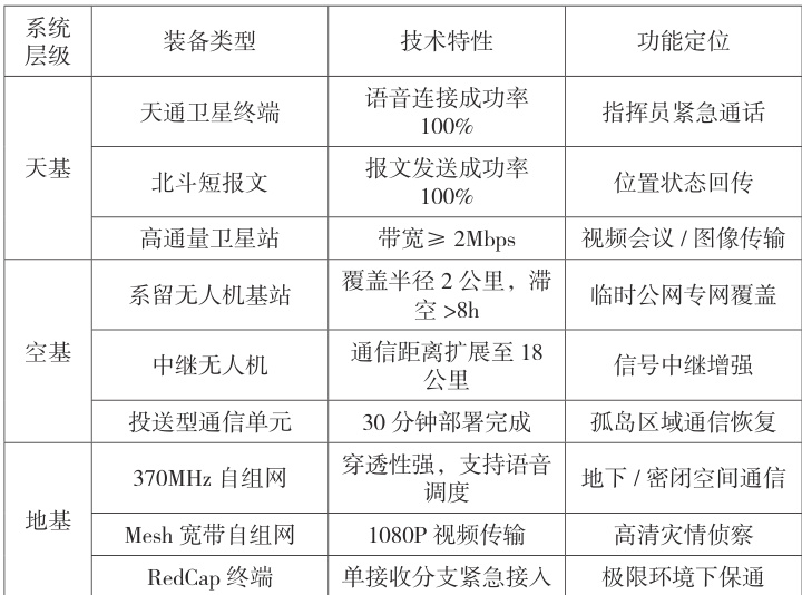 表1 :空天地一体化应急通信装备体系构成