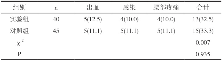 2.3 两组并发症发生率比较两组并发症发生率比较,差异无统计学意义(P>0.05),如表3 所示。表3 两组并发症发生率比较 (n(%)]