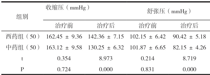 2.1 治疗前后血压指标比较