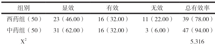 表2 两组总有效率比较[n(%)]