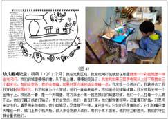 游戏中,孩子们表现出了他们惊人的学习力。小姑娘在水墨区绘画了一幅荷花。她的游戏故事写到:荷花离远的看很小,离近的看很大,这不就是美术绘画中透视的原理吗?还用到了“ 有的……有的……有的……” 、“ 淡淡的清香” 、“ 泛起涟漪” 、“ 清澈” 等排比句及优美的词汇。从她的游戏故事我们发现她细致的观察能力,以及较强的语言表达能力。小男孩在益智区玩电路组装后的一个游戏故事,他在故事中是这样表述的:第一个……第二个……第三个……,然后第一步是……,第二步是……。从他的游戏故事中可以看到他的逻辑思维是非常清晰的,他在这个游戏过程中不断的在分析为什么三个灯在一起比较亮,五个灯在一起就比较暗。其实就是涉及到了初中物理学上的并联,以及电流的分流等。孩子在游戏中的观察能力、思辨能力让我们不禁为之惊叹,从中我们也发现了孩子们惊人的学习了力。