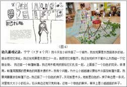 在区域游戏中,我们追随孩子兴趣,及时调整游戏区及材料,满足幼儿的游戏需要。开学初,我们创设了造纸焦点区、光影焦点区以及宇宙焦点区、水墨焦点区等。然而随着时间的推移,孩子们对这些区域的兴趣开始慢慢的淡薄。于是我们及时的根据实际情况进行调整,把造纸焦点区换成了更受女孩子欢迎的服饰焦点区;在光影焦点区增加了各种冰块,孩子们开始探究冰块与光影的秘密。参观过小学后,我们又把宇宙焦点区进行了改造成了小学的焦点区。在这个焦点区,孩子们通过阅读有关小学的绘本、课本,使用小学生的文具用品,设计心目中的小学等,更深入地了解小学生的生活,为顺利进入小学做好准备工作。