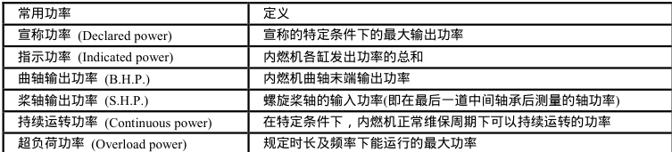ISO 15550:2016《内燃机功率的测定和测量方法-通用要求》,内燃机常用功率及其定义如表 1