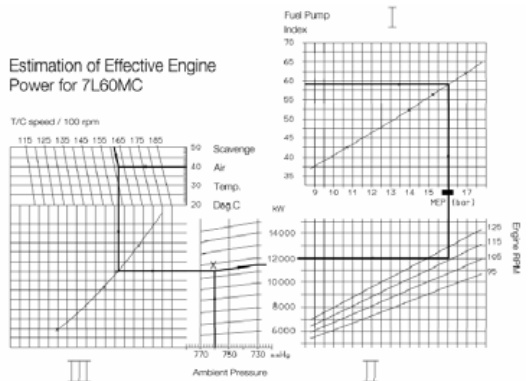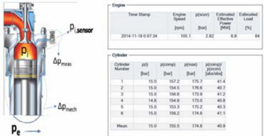 如图 2,通过主机气缸上安装压力传感器,可以在线计实时计测每各气缸的平均有效压力。由平均有效压力可以得到主机实际发出的功率,如要得到需要的曲轴输出功率,还需要考虑主机机械效率。一般的,默认情况下摩擦损失按 1bar 平均有效压力考虑。