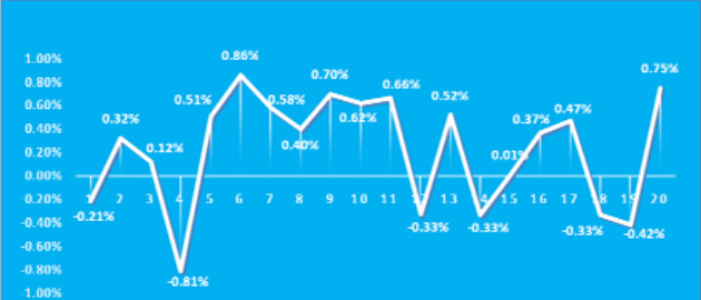动态校验:利用轴功率计小时级数值对以上双源修正结果进行动态校验,对修正系数进行调整和优化。在某系列散货船上,利用以上提到的计测方案,确定的修正系数 a=-0.98 ,b=2.05。结果显示,实际功率误差控制在± 1% ,典型数据(占比约 65% 偏差控制在± 0.5% ,明显优于传统计测方式。详细数值如图 5。