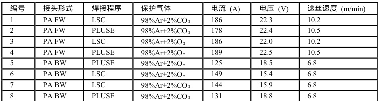 表 1 焊接试件参数设计