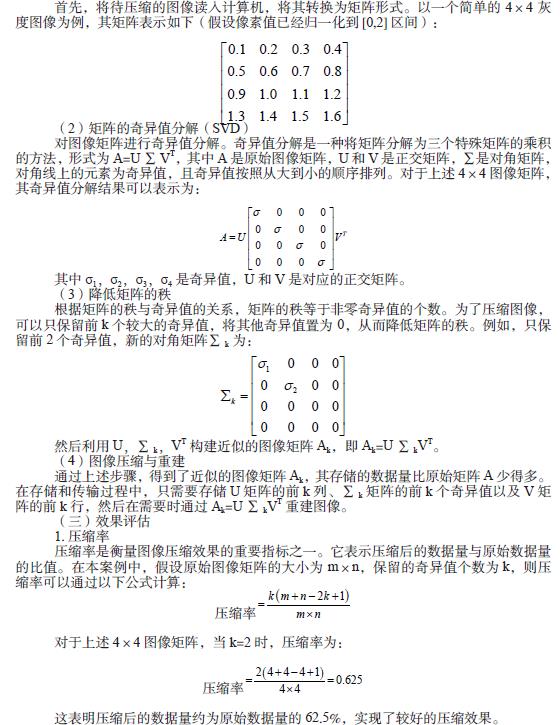 矩阵的秩是一个重要的概念,它表示矩阵中线性无关的行数或列数。在图像矩阵中,如果矩阵的秩较低,说明图像中存在大量的冗余信息。通过降低矩阵的秩,可以去除这些冗余信息,从而实现图像的压缩。