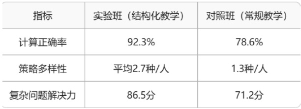 结构化教学于计算教学而言,优势显著。一方面,它能促进知识系统化存储,把零散计算知识编织成有序网络,让学生理解知识间关联,大幅减轻记忆负担 ;另一方面,可提升计算策略的灵活迁移能力,像能将小数除法里积累的运算经验,顺畅迁移到分数除法学习中,助力学生打通知识应用通道,应对不同情境计算问题。