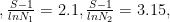 所以 2.1lnN13.15lnN2 约分可得 2lnN13lnN2 ,故 lnN12=lnN23 所以 N12=N23