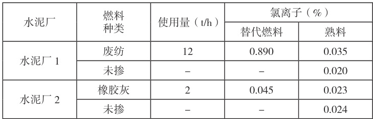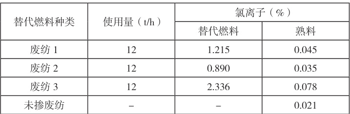 表3.1 不同种类替代燃料对熟料氯离子的影响