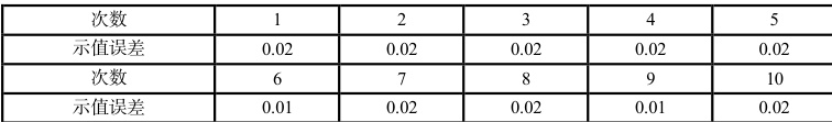 任取一件分辨率为 0.01mm 的 (0~300)mm 数显游标卡尺,对其 291.8mm 的示值误差在重复性条件下连续测量 10 次,测得值如表 2 所示。