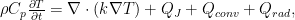 其中 p 为密度, Cp 为比热容,T 为温度, k 为热导率,